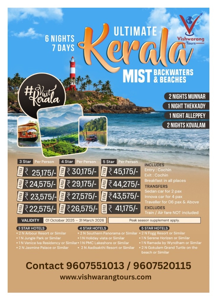Drift along peaceful backwaters, relax on golden beaches, and explore lush green hills. Kerala’s natural beauty and warm hospitality make it truly “God’s Own Country.”